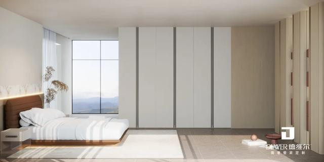 极简视觉之下,纯粹的白色将舒适、轻缓的气息注入其间,到顶式衣柜,强大的收纳功能,完全满足居者的使用需求。